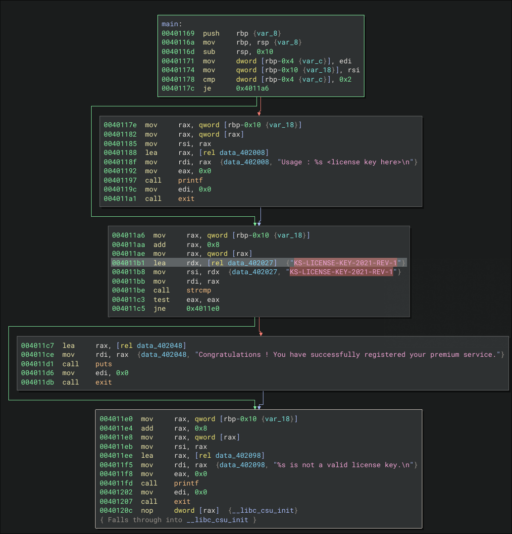 Reverse engineering license-checker from crackmes.one